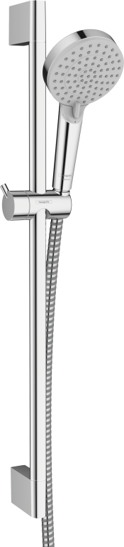 The hansgrohe Vernis Blend Vario shower set with 65 cm shower rail impresses users with its functionality, quality, price and playful side in equal measure. The 100 mm Vernis Blend Vario shower head distributes the water evenly across the body (XXL Performance). The two jet types guarantee lots of fun with water: The powerful Rain jet offers an invigorating burst of freshness for the entire body. The IntenseRain jet is revitalising and excellent at rinsing shampoo out of hair. Quick diversion: The jet types can be diverted by simply turning the spray disc on the shower head. Yet another advantage: The 0.65 m long, sturdy, chrome-plated brass shower rail can be used flexibly to adjust the height of the shower head.