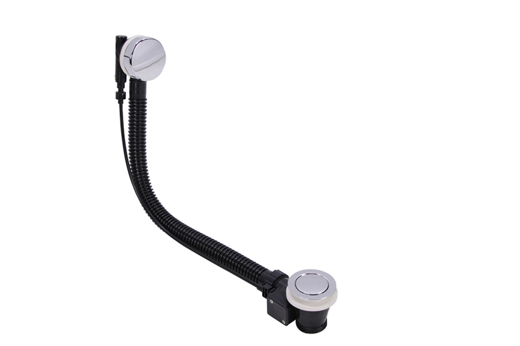 Stainless steel bath pop up waste standard internal plug with metal overflow cover.